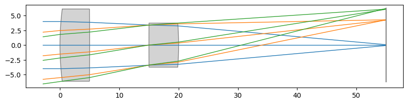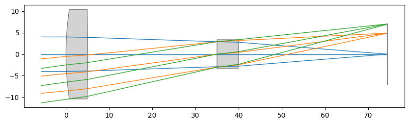 res = optimizer.optimize(maxiter=256, disp=False, workers=-1)Draw the optimized lens layout