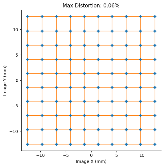 Quantifies the percentage deviation of image height from the ideal paraxial prediction ().