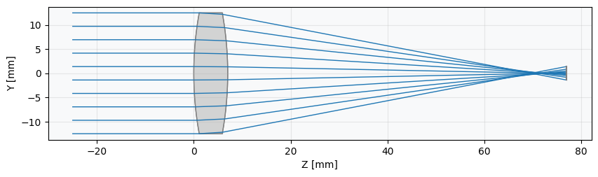 lens.draw(num_rays=10)