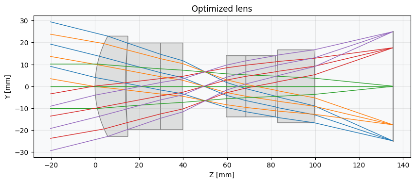 lens.draw(title="Optimized lens")