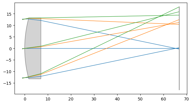 singlet_gaussian = SingletConfigurable(bsdf=bsdf)Trace Rays Through Gaussian Singlet