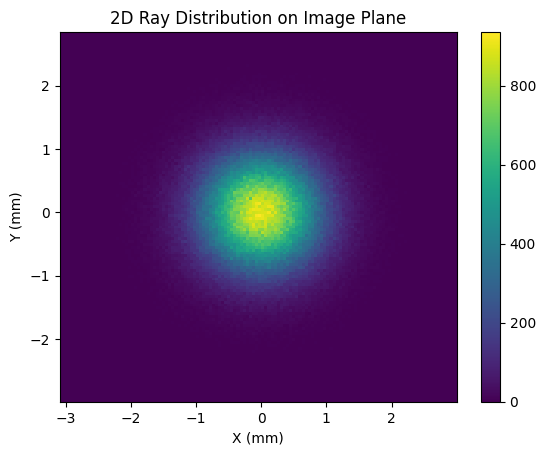 Again, we trace 1 million rays and view the distribution at the image plane: